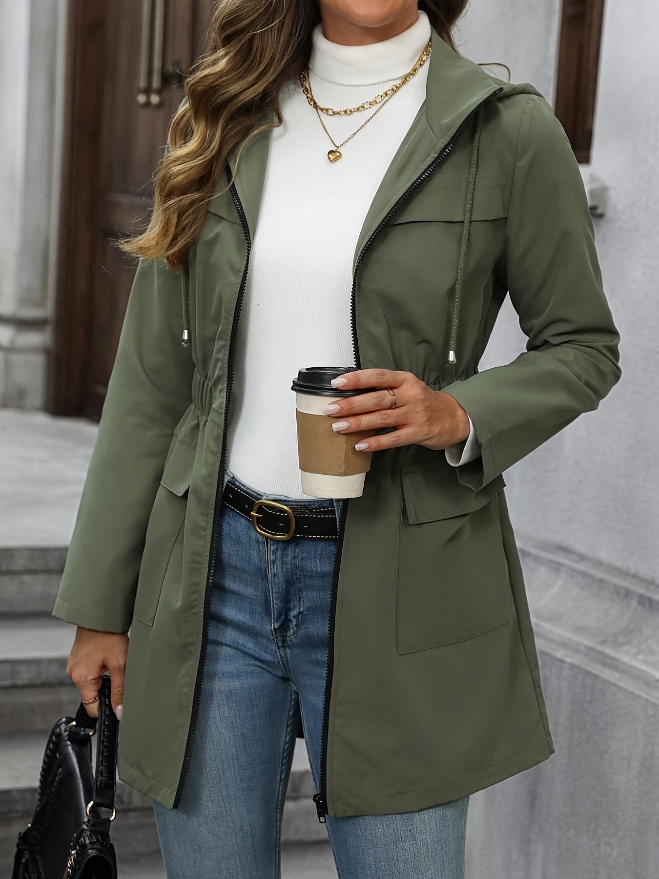 This casual jacket coat is designed to deliver effortless style with everyday comfort. Featuring a clean, modern silhouette with a lightweight feel, it offers a polished look that’s easy to wear throughout the day. The adjustable waist detail subtly defines the figure, while the zip-front closure and hooded design add a practical, contemporary touch.