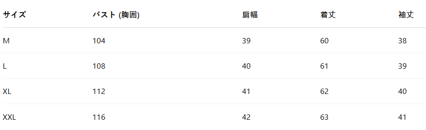 2XL 38.6–40.2 30.7–32.3 40.9–42.5